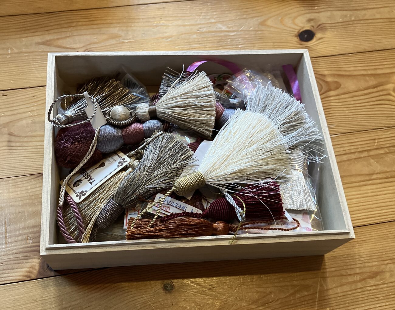 カルトナージュでもあちこちでタッセル使ったステキな作品見て、タッセルを次々購入してました。